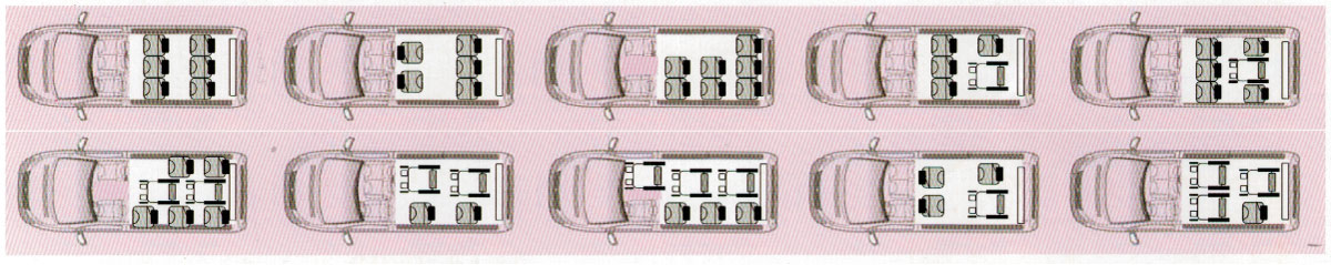 - Posti per disabili non deambulanti: fino a 4 posti carrozzella